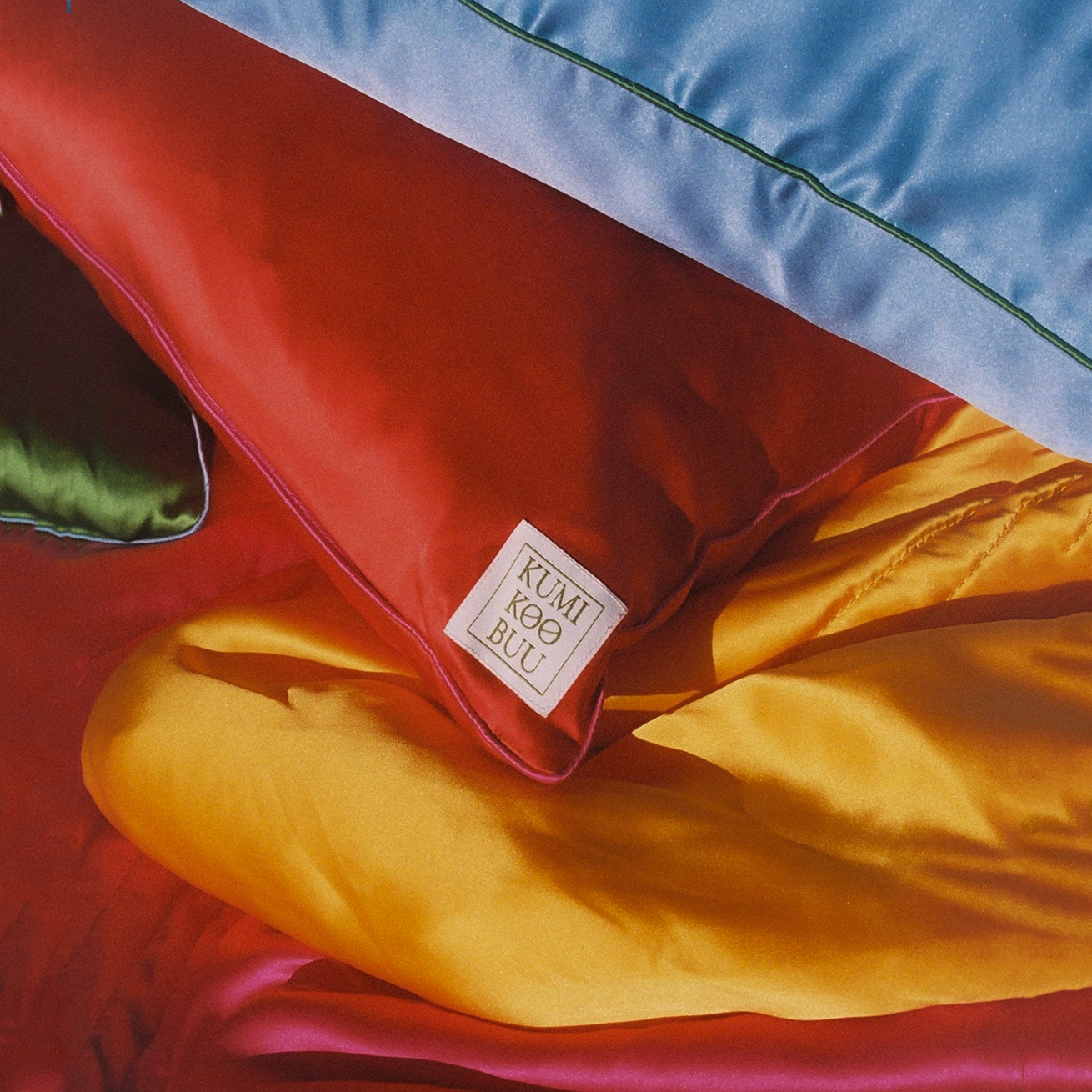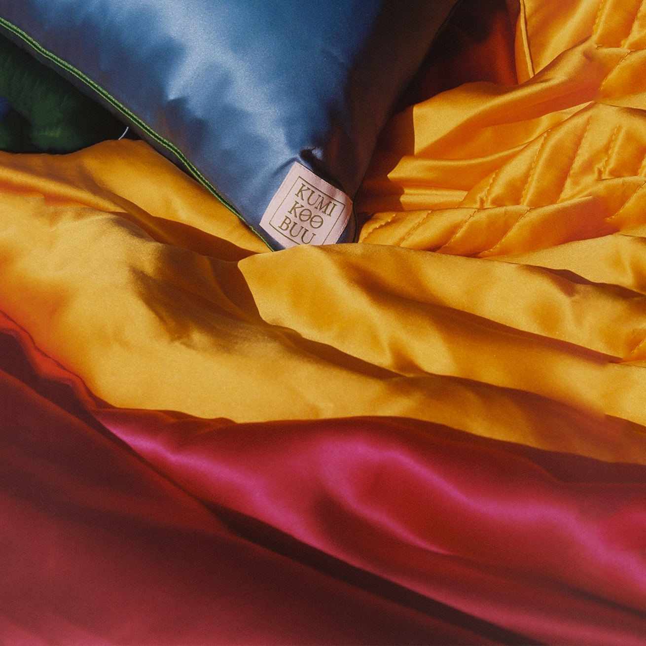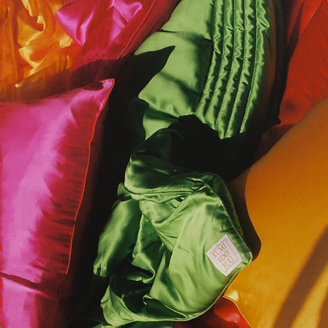 kumi køøbuu is a capsule collection with Tallulah Willis featuring a six-piece line of the most delicious jewel tones, with the centerpiece product being these silk filled throws that delight the senses as they literally wrap you in a luxurious silk cocoon.