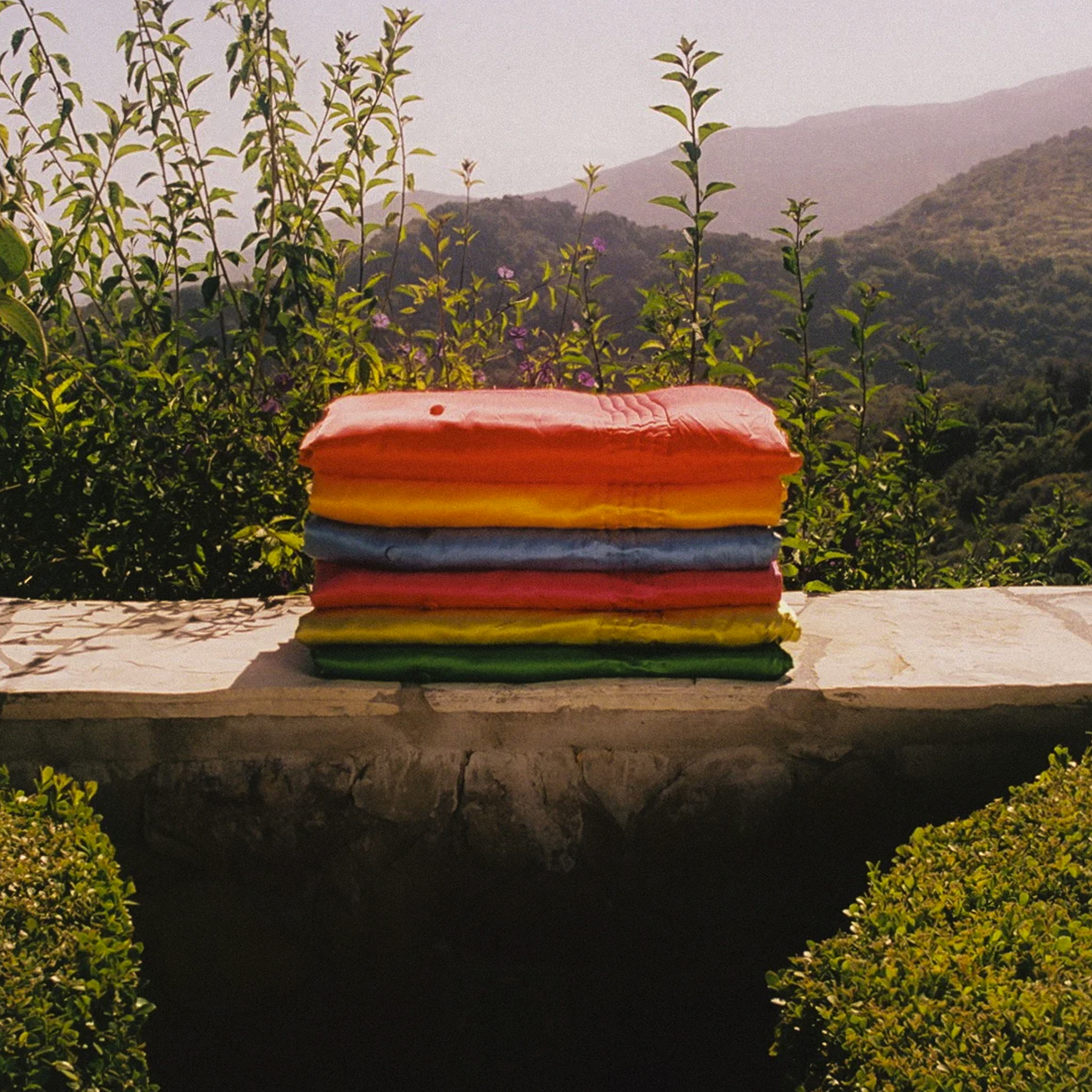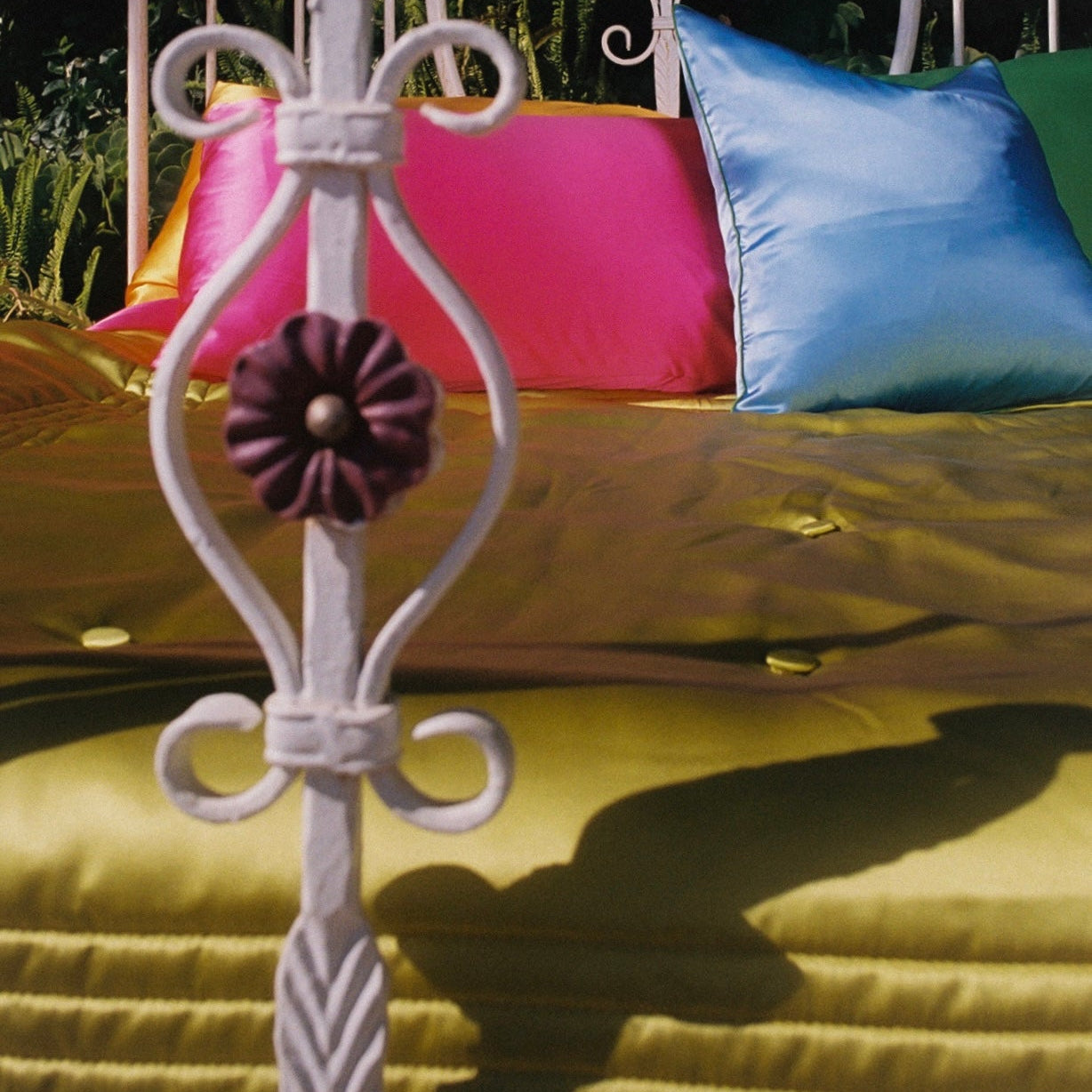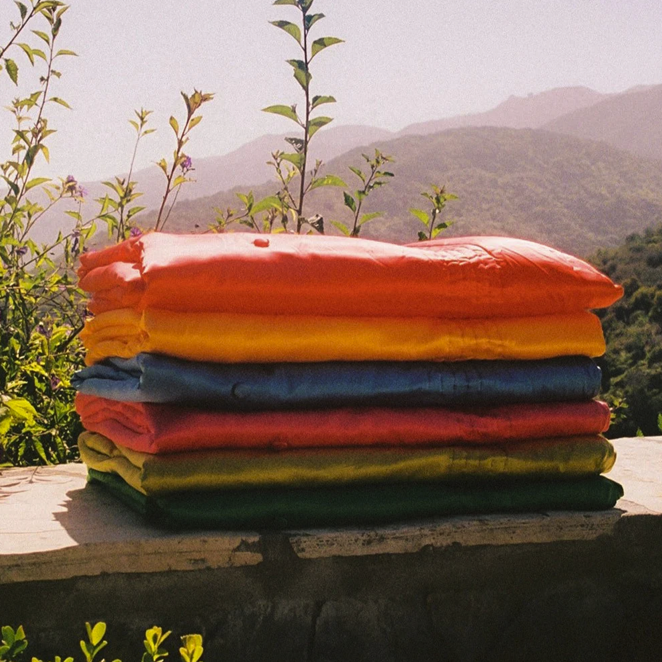 kumi køøbuu is a capsule collection with Tallulah Willis featuring a six-piece line of the most delicious jewel tones, with the centerpiece product being these silk filled throws that delight the senses as they literally wrap you in a luxurious silk cocoon.